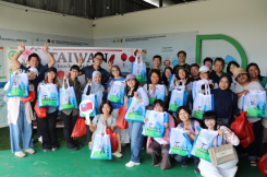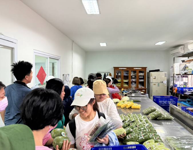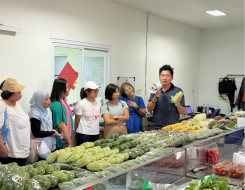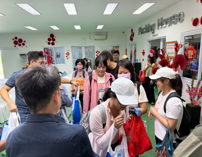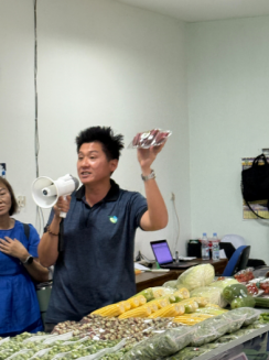 Ketua tim memberikan hadiah sayuran kepada setiap orang.